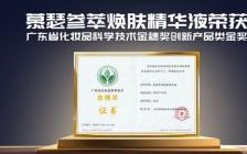 近日,由广东省化妆品科学技术研究会主办的第九届化妆品科技节在广州越秀国际会议中心盛大启幕,安然公司慕瑟参萃焕肤精华液凭借突破性的创新技术,从众多竞品中脱颖而出,荣获广东省化妆品科学技术金穗奖创新产品类金奖。