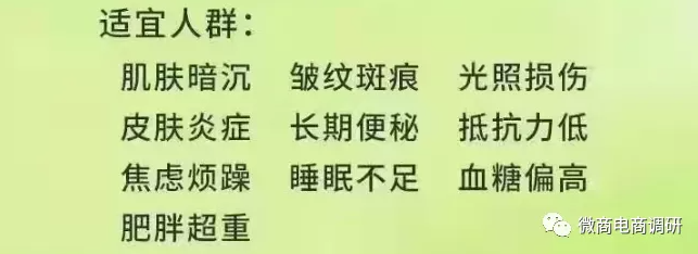 然而,据经销商提供的宣传材料显示,该产品共具有六大功效:清肠道、清毒素、清自由基、抗糖、抗衰、补营养助睡眠,简称“3清2抗1养”。