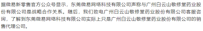 那么,东莞微易网络科技有限公司究竟是何来历?声称与广州白云山敬修堂药业股份有限公司达成战略合作,到底是真是假?声称“0成本”即可成为公司代理商,其代理制度究竟有何特色?