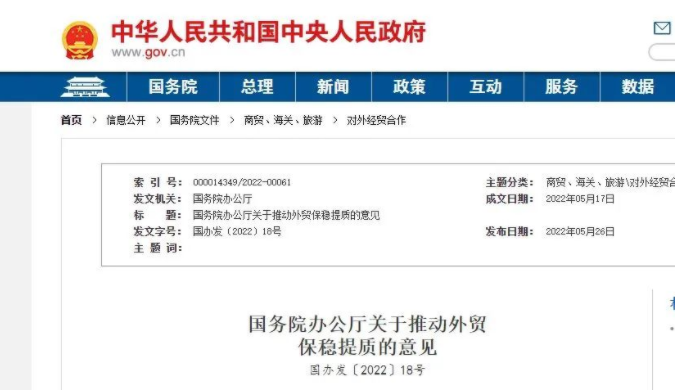 5月26日,国务院办公厅印发《关于推动外贸保稳提质的意见》(以下简称《意见》),明确四方面13项举措,深入贯彻落实党中央、国务院决策部署,帮扶外贸企业应对困难挑战,实现进出口保稳提质任务目标,助力稳经济稳产业链供应链。