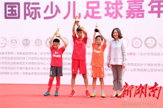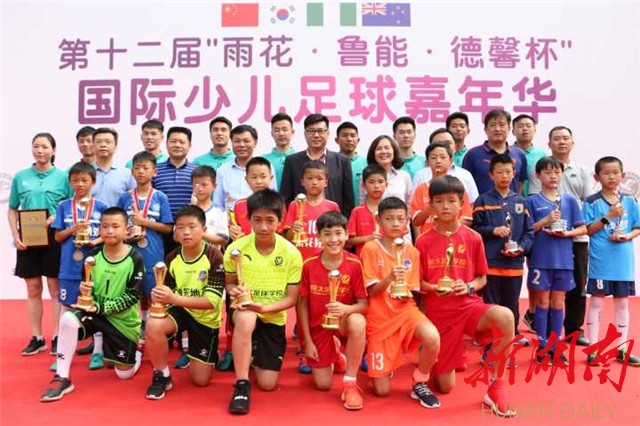 湖南日报·新湖南客户端5月3日讯(记者 王茜 通讯员 薛鞠)今天,为期5天的第十二届 “雨花·鲁能·德馨杯”国际少儿足球嘉年华活动在长沙闭幕,恒大足球学校代表队、衡阳市融冠代表队、雨花教育代表队分别获得国际组、校园甲组、校园乙组冠军。在闭幕式上,湖南省体育局青少处调研员刘滨为三个组别的冠亚季军颁奖,并为最佳球员、最佳射手、最佳守门员等颁发奖项。