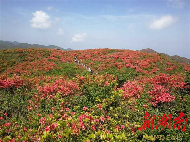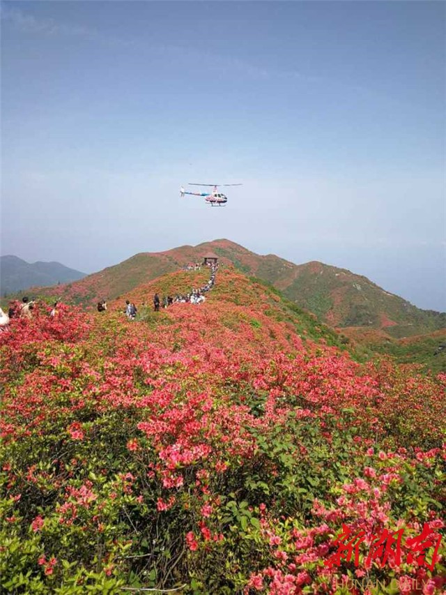 湘东明珠大围山十万亩野生杜鹃开放得热烈奔放,漫山遍野的红杜鹃,吸引了十多万游客上山赏花。