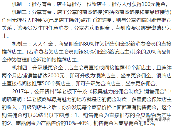 2016年,有经销商在美篇上分享洋老板当时的四大机制:
