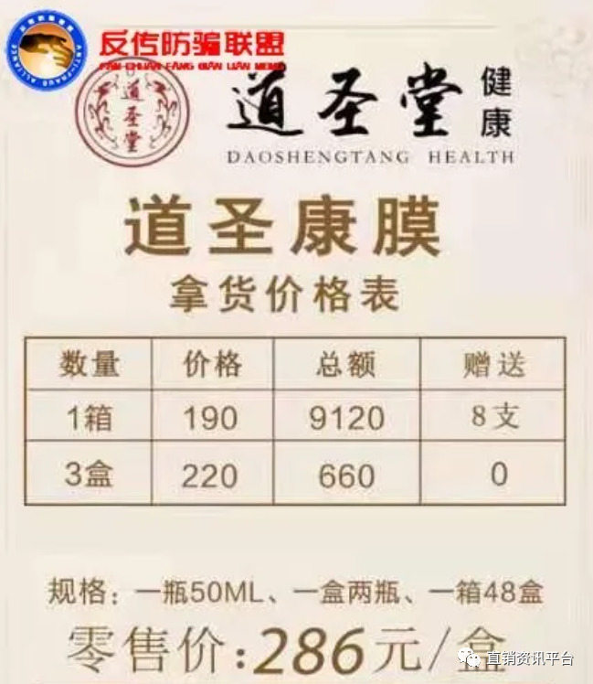 除了产品涉嫌虚假宣传及多次更名变换马甲屡遭吐槽之外,道圣康膜最惹人争议的还有它的制度模式。