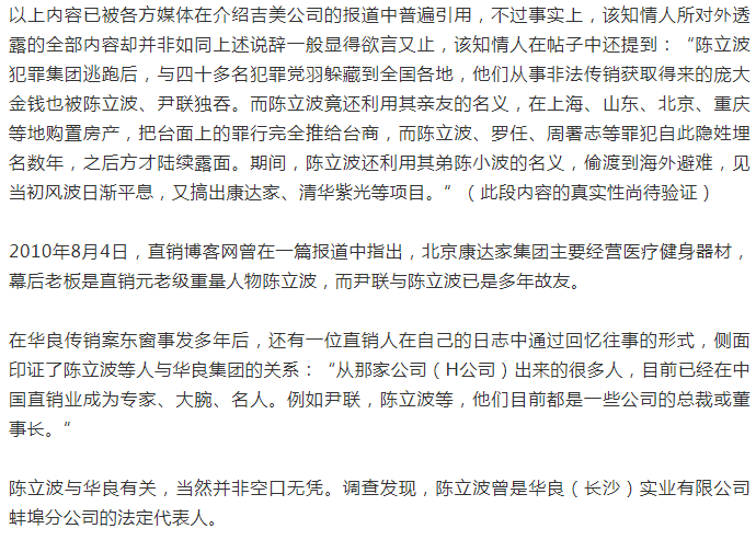 陈立波再次出现在大众视野之中是华良集团彻底倾覆整整三年之后的2005年,随着吉美公司的前身“湖南紫光古汉科技发展有限公司”的注册成立,此时,蛰伏了数年之久的陈立波才算是正式对外宣告卷土重来。