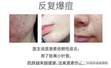 但为了让更多人相信名妍呈美旗下的化妆品具有抗炎、治疗皮炎的医疗作用,还有一些经销商在网上晒出了相关案例来证明产品的有效性,根据有关截图显示,曾有消费者以往被医生诊断出得了依赖性皮炎,但在使用了肽美小针管后皮肤就变得健康了。
