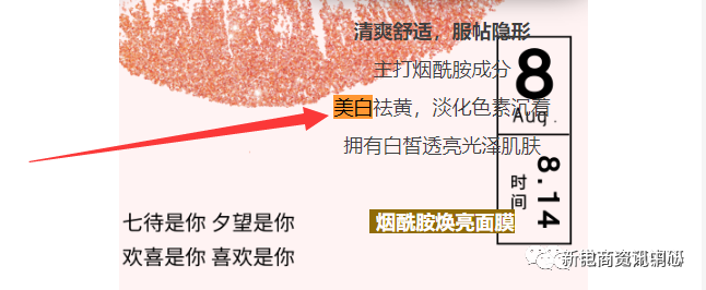 在名妍呈美旗下众多化妆品产品当中,名妍呈美烟酰胺焕亮面膜也同样涉嫌存在虚假宣传的问题,在官方公众号的宣传下,该产品自称具有美白祛黄的功效。