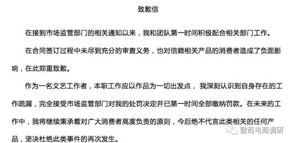 当日,景甜通过微博发布致歉信,称接受市场监管部门的处罚决定,并已缴纳全部罚款。