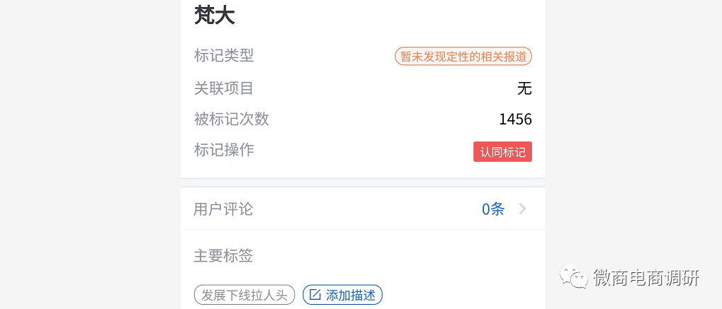 眼下,在由聚优传媒舆情监测中心与防传管家共同推出的《投诉举报统计》(统计来源于反传销网旗下各网络咨询平台及反传销网咨询部接到的关于对各类疑似资金盘、网络传销、非法直销、非法集资等情况登记)当中,“梵大集团”已然榜上有名。无独有偶,在腾讯灵鲲金融风险监管平台上,“梵大”这个关键词也已被标记了上千次。