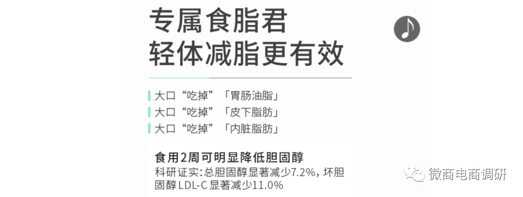 说回产品本身,我们以“轻代码食脂君(菌)”为例,有宣传材料指出该产品具有减脂作用,甚至还表示通过食用相关产品减肥很简单。