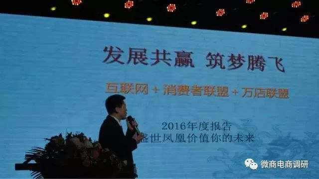 微商电商调研从凤凰酿酒官方公众号进一步了解到,凤凰酿酒在2015年就开始了“互联网+”与“O2O”的探索之路,并于2016年搭建了盛世凤凰这个全新的创业平台。区别于传统和直销两大销售模式,采用“互联网+消费者联盟+万店联盟” 模式。其后,凤凰酿酒在全国各地多次举行招商大会。