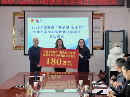 2025年3月27日上午,如新中华儿童心脏病基金携手共青团陕西省委、陕西省青少年发展基金会、中国青少年发展基金会以及空军军医大学西京医院,在陕西省商洛市洛南县共同启动2025年度陕西希望工程青少年健康“心”守护行动 ——“新梦想 心希望” 如新中华儿童心脏病基金救助公益项目。此次活动,如新中华儿童心脏病基金与中国青基金会向陕西共青团捐赠 180 万元善款,为众多先心病患儿及其家庭带来了温暖与希望。