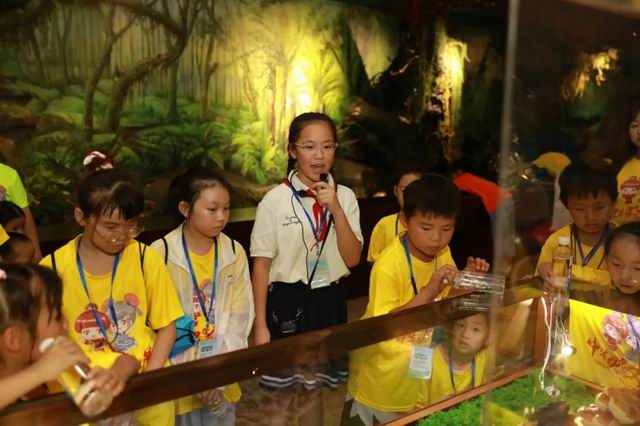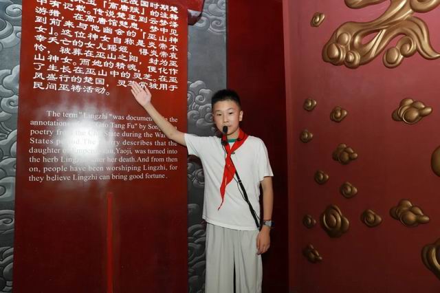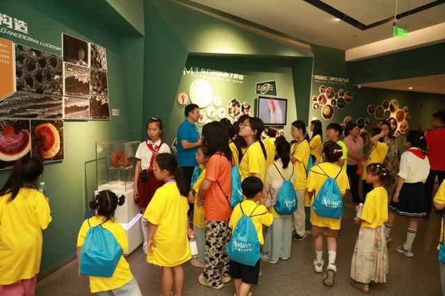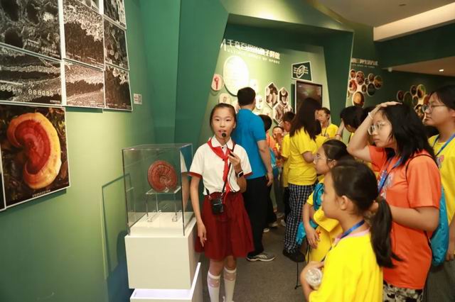 “大家知道山鬼的前身是谁吗?”“全世界共有灵芝200—300种,据目前调查中国有灵芝100多种”……在中华灵芝文化馆内,一群“小老师”正绘声绘色地带领蘑法夏令营学员穿梭于千年灵芝文化长河。