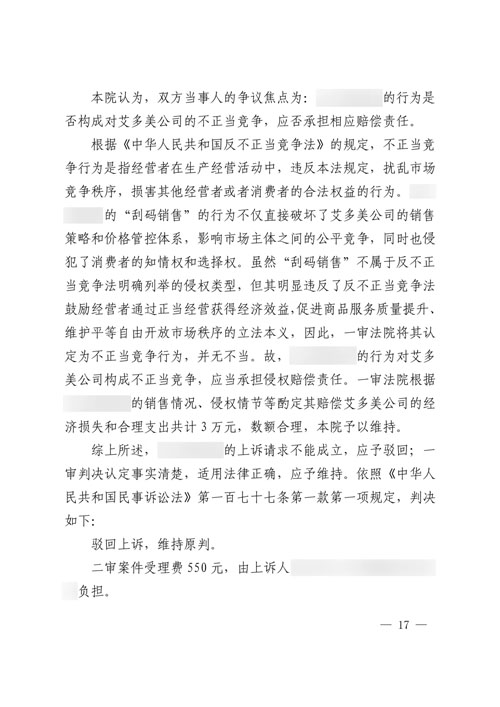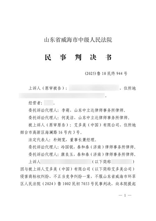 2025年,类似侵权事件再次发生。又一家淘宝店铺因未经授权刮除产品识别码低价销售艾多美产品被诉至法院。山东省威海市中级人民法院经审理,同样认定该网店的刮码销售行为构成对艾多美中国的不正当竞争,需承担侵权责任,判决其赔偿艾多美中国经济损失人民币30000元。