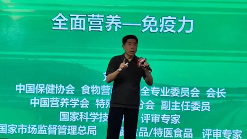 公司专家组成员刘天鹏教授作了题为《免疫、生态与大健康》的专题讲座。他结合生动案例,深入剖析了现代饮食结构失衡对人体免疫力造成的潜在影响,让现场观众直观认识到饮食与健康之间的密切联系。针对不同人群的营养需求,刘教授科学推荐了相应的营养补充方案,为听众提供了专业且实用的健康指导。
