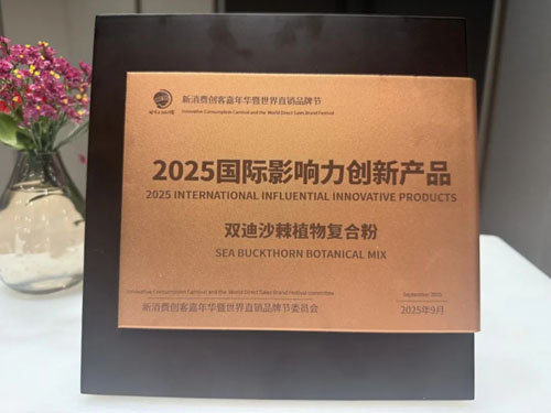 双迪旗下明星产品——双迪沙棘植物复合粉荣获“2025国际影响力创新产品”奖,双迪灵芝植物复合粉荣获“2025国际匠心制造产品”奖。