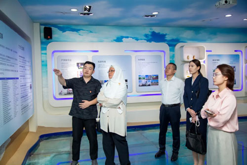 萨拉尼·宾特·扎卡里亚教授参观了甲壳素科技馆、卫康文化馆,深入了解卫康生物集团的发展历程、科研成果和企业文化。