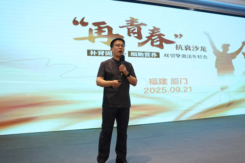 国珍健康研究院副院长李爱民深入介绍了公司融合传统养生智慧与现代生物技术双引擎开发的抗衰新品松延膏,该产品彰显了企业以科技赋能健康服务、造福大众的创新追求。从现场与会人员的热情能够感受到大家对该产品表现出高度认可,以及对抗衰领域的强烈关注与需求。