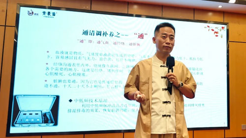 手法演示结束后,三八妇乐德宸系统健康顾问负责人晏维立对技术手法演示进行了全面而深入的总结。他从技术原理、操作要点、常见问题及解决方法等多个方面进行了细致梳理,进一步加深了大家对青囊集中低频循经推拿康复技术的理解和认识。