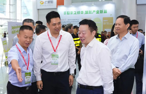 安化县人大常委会党组书记、主任陈飞燕(左三),安化县委常委、宣传部部长廖小甫(右二),安化县人大常委会原主任蒋跃登(左二)莅临公司展位