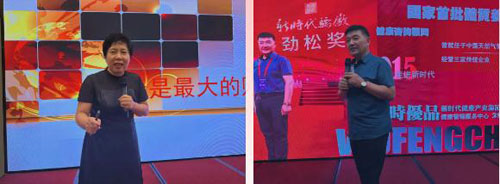 星级健康管理服务中心负责人刘凤梅、吴凤忱分享了与公司共同成长的经历,讲述了服务市场过程中的收获,展现了跟随公司发展的坚定信心,并号召更多人加入新时代,共享健康新生活。