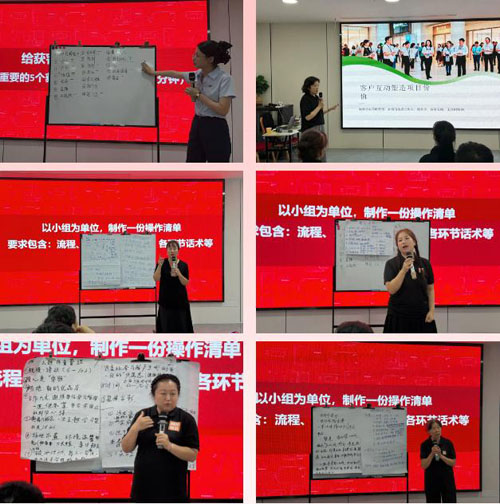 下午,分公司讲师黄琳砚带来了《社区站的核心-引流与拓客》核心课程。她不仅传授了前沿的获客理念与策略,更巧妙融入了大量实操演练。期间,社区站负责人陈振霞倾囊相授,分享了经过实践检验的地推与监测引流方法,并总结了常见问题,为后续的小组讨论抛砖引玉。各组成员随后围绕真实案例展开激烈研讨,集思广益,在思想碰撞中不断优化方案,