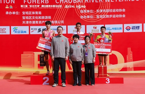 和治友德副总裁池鲲(左二)为赛事男子半马前三名选手颁奖