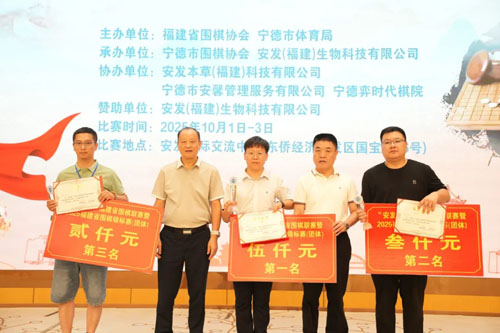 闭幕致辞中,宁德军分区原副司令员、福建省围棋协会卢阳阳主席首先代表组委会向倾力承办本次赛事的安发集团表示衷心感谢,特别对高益槐教授、高炜总裁致以崇高的敬意,盛赞安发集团在取得卓越经营成就的同时,积极投身公益,量化推动中华优秀传统文化传承的担当精神。最后,卢阳阳主席向所有获奖团队及选手表示热烈祝贺,并郑重宣布:“安发杯”福建省围棋联赛暨2025福建省围棋锦标赛圆满闭幕!