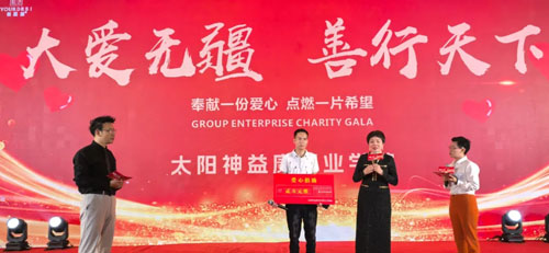大会还设公益环节,关注太阳神益康市场团队伙伴黄先生抗癌情况,太阳神益康公益基金及现场伙伴捐款近5万元,为其筑起生命防线,彰显团队凝聚力与社会责任感。