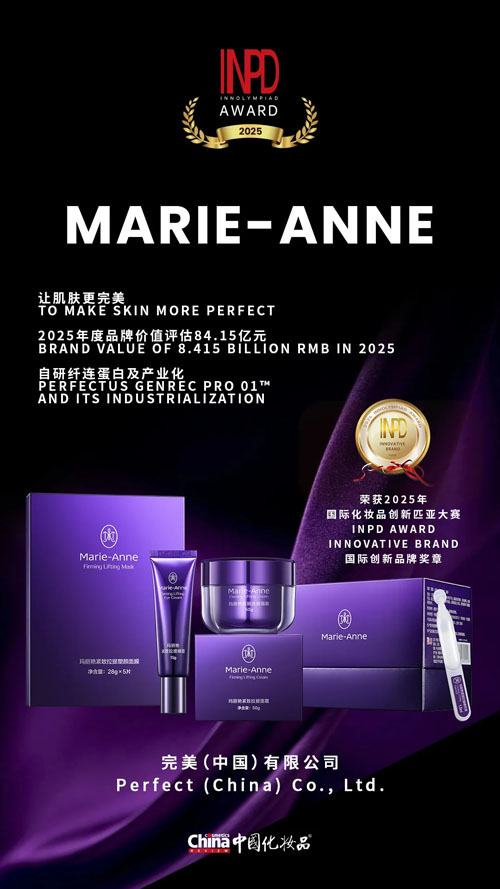 本次峰会共设立8大类创新大奖,覆盖化妆品研发、生产、品牌建设全链条。凭借“法式优雅+东方智慧”的融合创新并经赛事组委会严格评选,完美(中国)有限公司(简称“完美公司”)旗下品牌玛丽艳荣获2025年国际化妆品创新匹亚大赛“INPD国际创新品牌奖”。该奖项既是对完美公司品牌力与科技实力的肯定,更是对中国化妆品创新品牌的权威认可。
