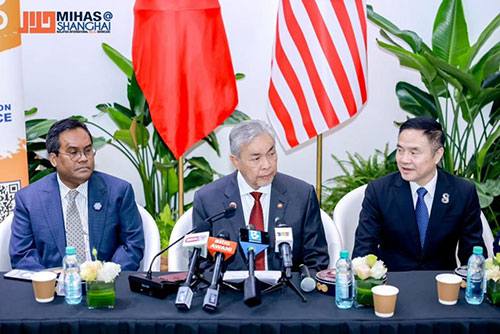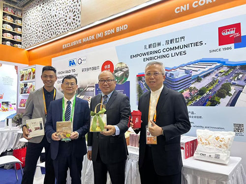 在MIHAS展区开幕仪式上,马来西亚副首相拿督斯里阿末扎希(YAB Dato' Seri Dr. Ahmad Zahid Hamidi)亲临现场并主持剪彩。他强调,进博会是马来西亚企业拓展国际市场、深化与中国经贸合作的重要平台。马来西亚与中国的合作不仅限于贸易,更植根于互信、共同繁荣与深厚的人文纽带,这也是首次将马来西亚顶级清真展MIHAS带到上海的原因。他鼓励马来西亚企业借助这一机遇,进一步推动优质产品走向世界。随后,副首相特别参观了CNI长青集团的展位,与集团高层进行了亲切交流,并对CNI的产品研发与市场战略给予了高度评价。副首相的到访,不仅是对CNI的肯定,也为马来西亚企业在中国市场的发展注入了信心。