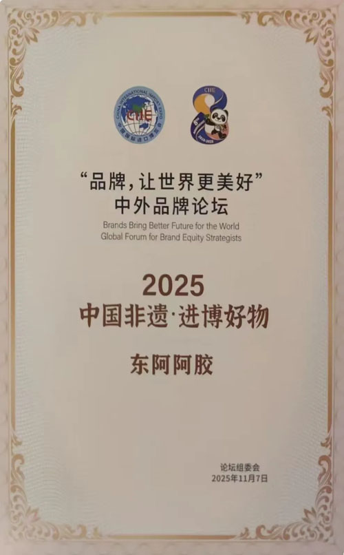 会议期间,东阿阿胶还获得新华社新闻信息中心上海中心评选的十大“中国非遗·进博好物”殊荣。
