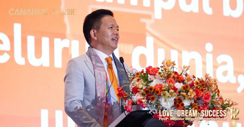 随后,佳莱董事长熊峰先生登台致辞,分享佳莱全球化布局战略视野,讲述十二年来印尼市场从萌芽到蓬勃发展的感人历程。熊董的致辞真挚而充满力量,热烈掌声不断,现场气氛温馨又令人无比振奋。