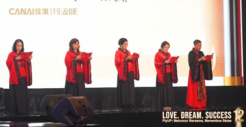 佳莱印度尼西亚公司12周年庆典,雅加达国际会议中心灯火辉煌。众多佳莱佳人身着盛装,在签名墙前留下灿烂笑容,会场内洋溢着重逢的欢笑与温暖拥抱。在“有爱、有梦、我成功”的主题氛围中,佳莱印度尼西亚公司12周年庆典拉开序幕。