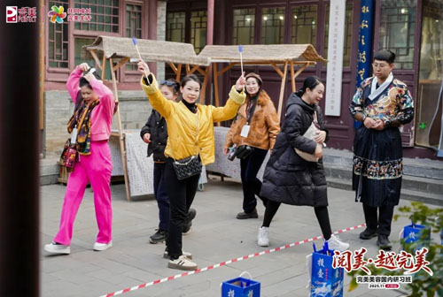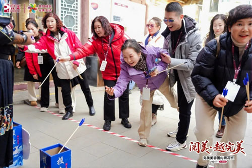 完美精英们在古城开展了一场国风团建,投壶的专注、摔方宝的激情、“飞鸽传书”的默契,大家在欢声笑语中拉近了彼此的距离,凝聚了团队力量。
