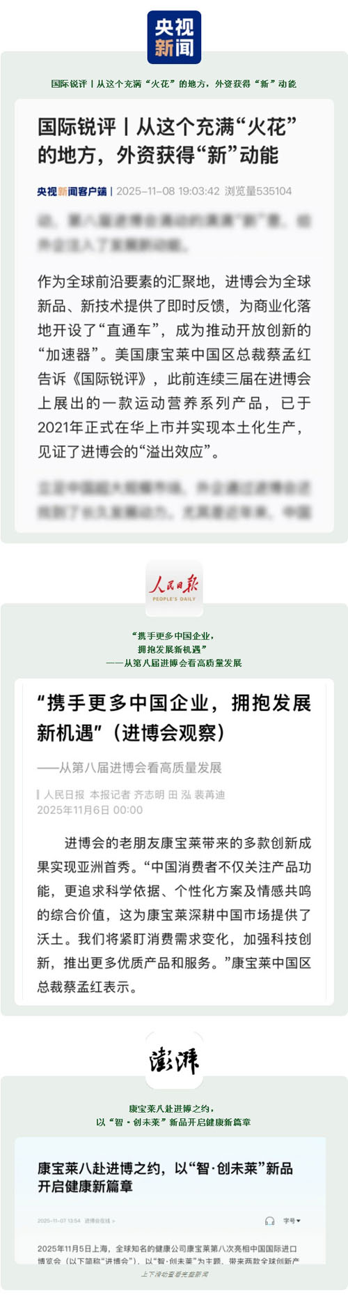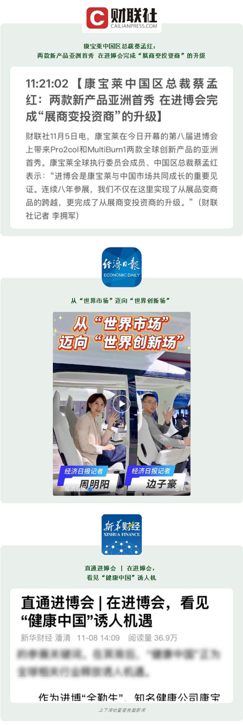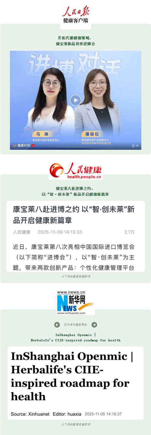 八度赴约,初心不改。在刚刚落幕的第八届进博会上,康宝莱以“智·创未莱”为主题,携两款亚洲首秀新品及30余款体重管理产品再度亮相,展现其深耕中国市场的坚定决心与创新实力,成为本届进博会健康展区一抹亮眼的色彩。多家主流权威媒体发声,让我们一睹风采。