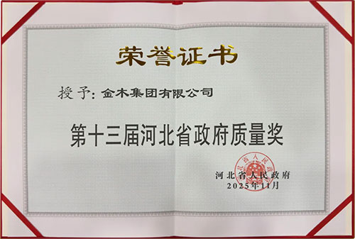 (金木集团“第十三届河北省政府质量奖”荣誉证书)