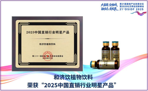 2025年12月4日-6日,第二十一届直销产业发展论坛暨2024社交商业创新峰会在北京中德国际会议会展中心隆重举行。和治友德副总裁池鲲先生受邀出席本次活动,并作为演讲嘉宾做主题分享。本次会上,天津和治友德制药有限公司荣获“2025中国直销行业践行健康中国战略典范企业”;和济饮植物饮料荣获“2025中国直销行业明星产品”;池鲲副总裁荣获“2025中国直销行业践行社会责任榜样人物”奖项。