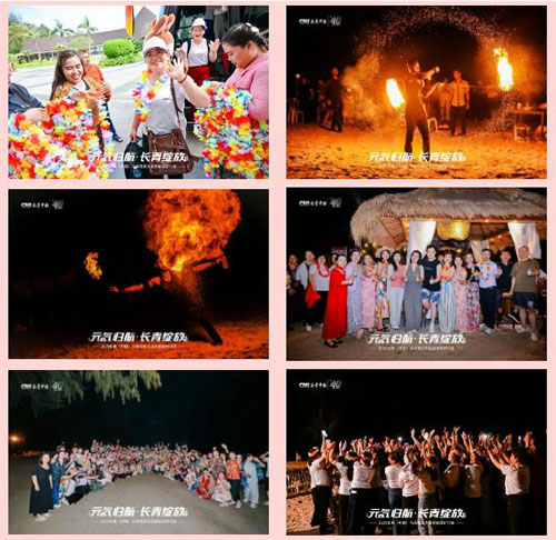 当晚,在雪邦黄金海岸棕榈酒店举行的欢迎晚宴上,极具热带风情的火舞秀与璀璨烟火交相辉映,寓意着长青事业如火焰般炽热、如星空般辽阔。这不仅是一场视觉盛宴,更通过沉浸式的体验,不仅消解了旅途劳顿,更极大地增强了经销商团队的归属感与凝聚力。