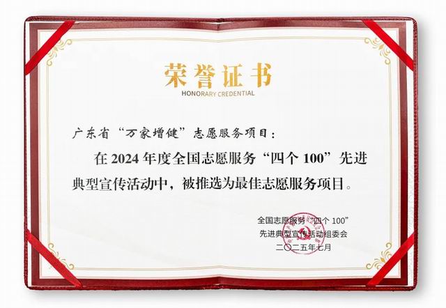 随着定制“增健包”的派送,实用又好懂的健康理念,正在融入更多居民的日常中。凭借专业的服务体系与广泛的社会影响力,项目荣获中央社会工作部2024年度“4个100”最佳志愿服务项目,成为“健康中国”战略贴近大众、服务基层的生动实践。