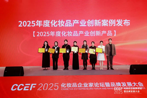 大会同期发布2025年度化妆品产业创新案例,公司京美华韵∙焕颜伊新系列护肤品凭借突破性科研成果与东方美学相融合的产品理念,在众多参评产品中脱颖而出,荣获“2025年度化妆品产业创新产品奖”。