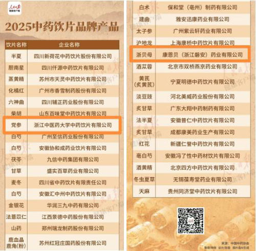 近日,中国中药协会正式发布《2025年度中药行业品牌信息公告》。经过权威机构的严格评审,康恩贝中药材饮片事业部选送的“党参”与“浙贝母”成功入选“2025中药饮片品牌产品”。同时,旗下大学饮片公司荣获“2025中药饮片品牌企业”称号。