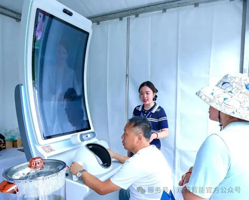 数字人语言交互问答、双手握住传感手柄,脸部贴近扫描仪,两分钟后,一份详细的健康评估报告便在屏幕展开,这便是观薇智能推出的“玄黄识仪”多模态健康检测仪带来的革新体验。