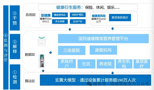 该平台将面向医疗机构、科研团队和企业开放模型能力接口。观薇智能将利用怀柔科学城的设施、机制等,构建检测(智能化诊断)——解释(人工智能人机健康交互)——干预(多元化健康干预方案推荐)——监测与评价(15天一个周期进行监测与效果评价)的业务链,打造人工智能、智能仪器、营养食养、运动健康、医疗康养、休闲娱乐等“AI+智能医养”的完整生态。