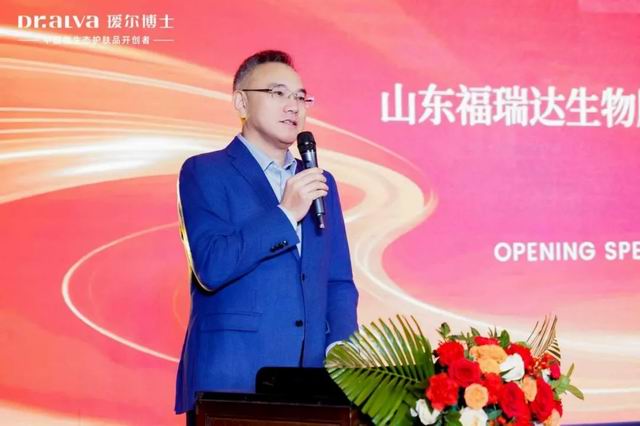 大会在主持人的热情开场中正式拉开帷幕。山东福瑞达生物股份有限公司董事长、总经理高春明首先发表致辞。他以“创新、极致、共生”三个关键词回顾了瑷尔博士从微生态护肤开创者到行业标杆的成长之路,并围绕“升维、聚势、共赢”阐述了2026年的单品牌店发展战略。高春明表示,瑷尔博士将持续深化单品牌店战略,赋能合作伙伴,共创可持续增长。