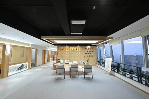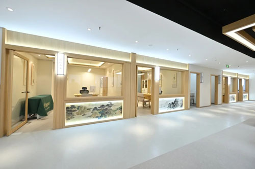 馆内采用纯粹中式装修风格,木质肌理与柔和暖光交相辉映,山水墨画与经络图谱点缀其间,搭配古朴茶歇区、静谧调理雅室及专业康复理疗室,墙面同步展示中医九种体质、膏方发展史、《黄帝内经》经典论述等内容,让每一位访客都能在喧嚣都市中寻得一方浸润中医药文化的身心休憩桃源。