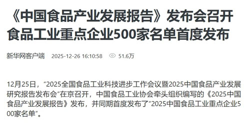 近日,“2025全国食品工业科技进步工作会议暨2025中国食品产业发展研究报告发布会”在京召开,同期“2025中国食品工业重点企业500家名录”正式发布。