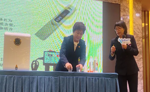 江海系统黄芝领导人赵艳玲为大家讲解了《安惠牌反渗透净水器》知识。她围绕饮水与健康这一主题,进行了细致且专业的分享,详细介绍了安惠反渗透净水器的核心技术、卓越性能以及贴心设计。从对重金属、细菌、杂质的高效拦截,到对每一滴水水质、口感的精心打磨,无不彰显着安惠对健康饮水的极致追求。她呼吁大家,选择安惠牌反渗透净水器,就是选择与健康同行,为自己及家人的健康保驾护航!