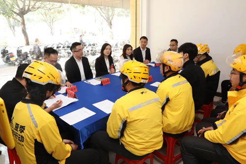 1月28日下午,由石岐街道两新组织党委、莲新社区党委与完美公司党委共同举办的“南粤暖新·迎新春”活动在美团“骑手之家”温暖举行。石岐街道党工委委员郭璇,石岐街道办事处副主任、两新组织党委书记李桂垣,中山市人大代表、完美公司CEO彭志红等出席活动,与骑手代表面对面交流,听心声、送温暖、话发展。