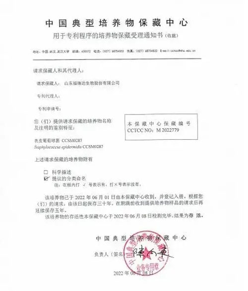 图2 表皮葡萄球菌CCSM0287菌株保藏证书